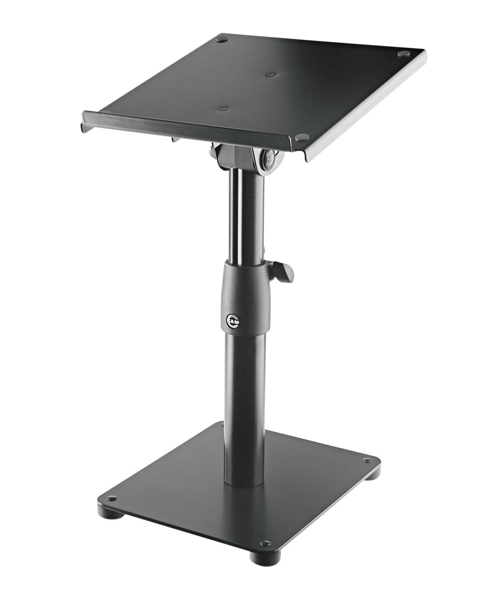 K&M (König & Meyer) offer a range of stable, steel, floor-mounting stands for monitor loudspeakers complementing the existing range of loudspeaker stands. All floor standing models are manufactured with a telescopic steel stem and have a black finish. Stem height is adjustable by locking screw and safety pin or spring-loaded knob with clamp.