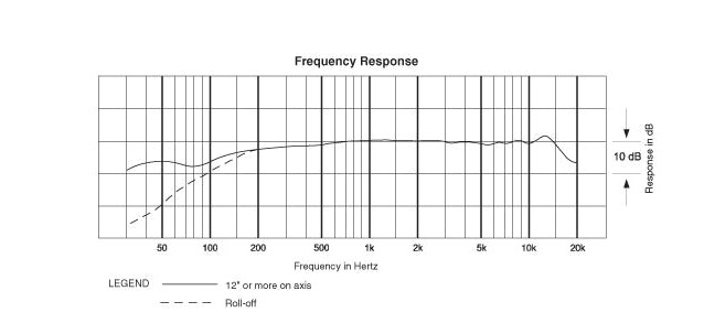 Maximum input: 134dB SPL. Response: 70Hz-16kHz. Sensitivity: 14.1mV/Pa. Impedance: 100ohms, balanced. Dimensions: 57mm head length; 12mm head diameter.