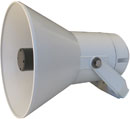 A Ronfalin C110 (PC+ABS) manufactured horn suitable for outdoor installation. The IP66/67 rated loudspeaker is available as HP-10 8ohms, HP-10 20 ohms, and HP-10T which operates on 70/100V line. Mounted via included bracket. Cable entry by way of M20 gland.