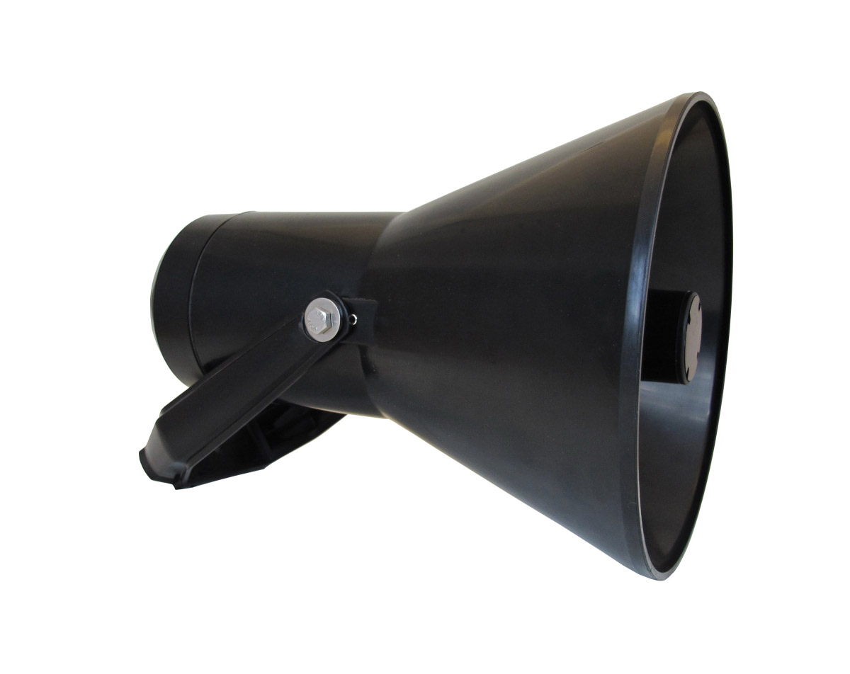 With a larger, 200mm diameter flare than HP-10, this 15W horn loudspeaker has an output of 108dB at 1W/1m, and an IP rating of 66/67 making it suitable for outdoor installation. Manufactured from plastic. HP-15T option has an internal transformer that allows 70/100V line operation.