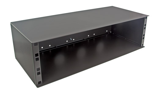 This range of boxes with integral rack-strips, punched in 1U increments, is suitable for wall mounting, fitting under workstations or virtually anywhere where connection panels or rack-mounting equipment needs to be located. They are constructed from 1.5mm steel in 2U, 3U, 4U, 6U, 8U, 12U and 20U heights and two depths in full-rack and half-rack widths.