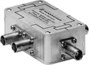 A passive two-way antenna-splitter with 2x two in and 2x one out. DC coupling can be used with a maximum of 0.3A. Compatible with frequencies within 30-950MHz.