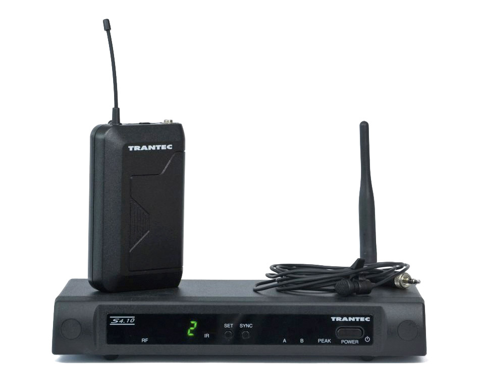 The Trantec S4.10 wireless range is next generation of 16-channel UHF wireless, replacing the Trantec S4.16 range. S4.10 offers the same range of full systems as its predecessor including handheld, headworn, and beltpack setups. Each system is available on either license-free channel 70, or channel 38, allowing up to ten simultaneous channels to be used. Belt packs can be switched for use with a microphone or musical instrument, and suitable lapel or head-worn microphones can be connected via the 3.5mm locking jack socket. Handheld transmitters have dynamic capsules. The handheld transmitter, belt-pack transmitter and desktop receiver use infrared signals to syncronise.
