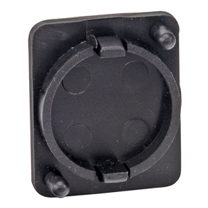 Moulded plastic and metal plates designed to blank off unused holes punched for Neutrik ‘D’ series XLR, jack and loudspeaker connectors (24 mm hole).