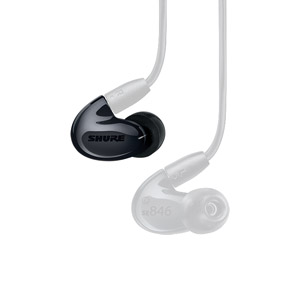 Available clear or black coloured, the SE846 offer four high-definition drivers for 'extended high-end clarity' and 'true subwoofer performance', the latter aided by the internal low-pass filter. The frequency response of 15Hz to 20kHz can be adjusted to the preference of the user by using the included, removable metal nozzle and inserting the balanced/warm/bright nozzle inserts included. The 9 ohm earphones can produce a sensitivity of 114dB SPL/mW at 1kHz, with up to 37dB of outside sound isolation. The included and detachable 1.16m and 1.62m cables terminate with 3.5mm jack connectors. A 6.35mm jack adaptor as well as airline adapter and inline volume control are included as accessories. A 'premium' carrying case and 'road case' are included to protect the earphones and cable in transit. Shure advise using in combination with nickel plated EAC46BKS, EAC46CLS, EAC64BKS, or EAC64CLS cable for better quality sound reproduction.
