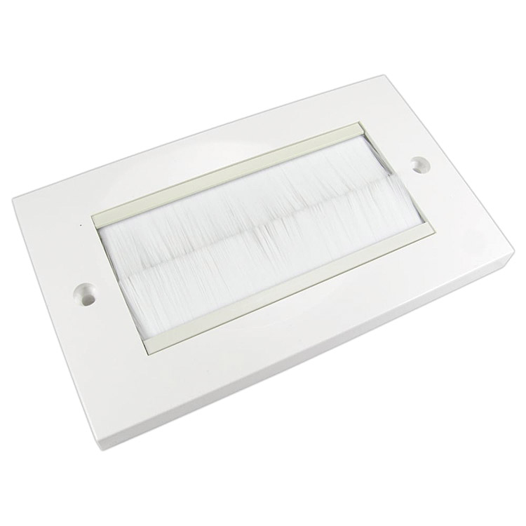 Faceplates are bevelled; back boxes are 32mm or 45mm deep, with various cable knock-outs for routing, both available in 1 or 2-gang variations. Brushed 1 or 2-gang faceplates are also available, for tidy routing of cables when no modules are required.