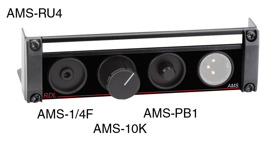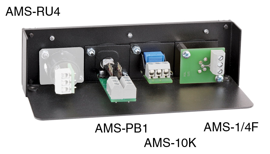 While intended originally to partner RDL the various RDL modules, the AMS system also lends itself to creating special control panels using other systems and circuitry. The Rack-Up mounting system provides suitable mounting hardware for equipment racks, wedge-shaped ‘pods’, free-standing cases and a variety of brackets.
