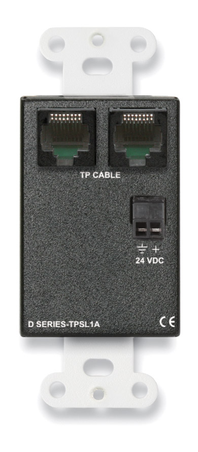 Available in white (D-TPSL1A), black (DB-TPSL1A), and stainless steel (DS-TPSL1A) finish, this active single-pair sender allows stereo input and combine to provide a mono output. A blue LED positioned on the front panel allows the user to identify power on status. remote powering is via twisted pair cable and RJ45 connection.