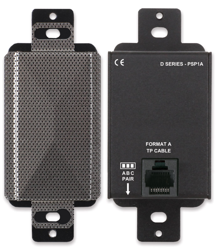 Available in white (D-TPSL1A), black (DB-TPSL1A), and stainless steel (DS-TPSL1A) finish, this active single-pair sender allows stereo input and combine to provide a mono output. A blue LED positioned on the front panel allows the user to identify power on status. remote powering is via twisted pair cable and RJ45 connection.