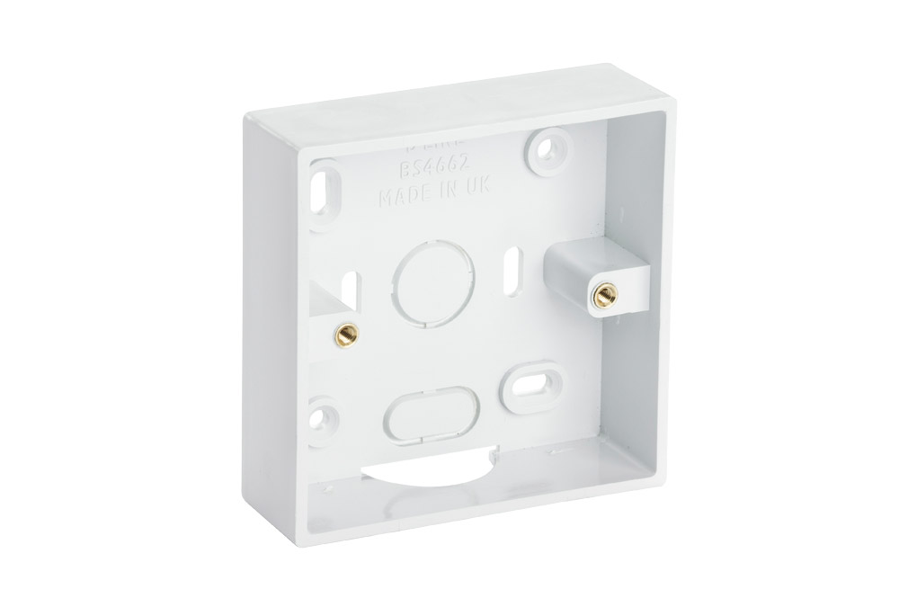 These plastic, surface-mounting back boxes are suitable for a wide range of applications. Manufactured from flame-retardant ABS, they are much less brittle than traditional electrical back boxes and so less prone to damage during installation, or if additional cable entry cut-outs are required. All types feature, a 30 x 15mm 'D' shaped cable-entry push-out tab for use with box adapters or box tee adapters; a selection of cable-entry knockouts on the base; and a selection of mounting holes for ease of installation.