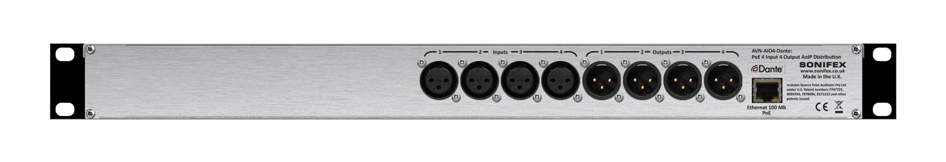 SONIFEX AVN-AIO4 DANTE AUDIO INTERFACE 4x analogue XLR in/out, Dante, 1USONIFEX AVN-AIO4 DANTE AUDIO INTERFACE 4x analogue XLR in/out, Dante, 1USONIFEX AVN-AIO4 DANTE AUDIO INTERFACE 4x analogue XLR in/out, Dante, 1U