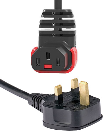 These leads use patented C13 female angled-connectors with an internal locking mechanism which locks in an IEC power inlet, to provide a simple way of securing a power cable to any electrical equipment fitted with a standard IEC connector. They are invaluable for use with critical equipment, either free-standing or rack mounted and in areas subject to vibration such as outside broadcast vehicles, touring and ‘fly-away’ kit where standard connectors may become dislodged in transit. A choice of angled connectors allow use in areas with space constraints. Ready made cables are offered terminated to standard IEC C14 male plugs, bare ends, and UK 13A and SCHUKO (right-angle) plugs.