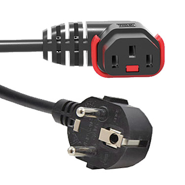These leads use patented C13 female angled-connectors with an internal locking mechanism which locks in an IEC power inlet, to provide a simple way of securing a power cable to any electrical equipment fitted with a standard IEC connector. They are invaluable for use with critical equipment, either free-standing or rack mounted and in areas subject to vibration such as outside broadcast vehicles, touring and ‘fly-away’ kit where standard connectors may become dislodged in transit. A choice of angled connectors allow use in areas with space constraints. Ready made cables are offered terminated to standard IEC C14 male plugs, bare ends, and UK 13A and SCHUKO (right-angle) plugs.
