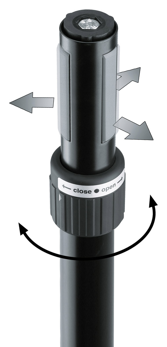 Has the same operational features as the 21338, however the bottom of the pole is terminated with M20 thread. Height adjustable from 940mm to 1,505mm. Weight is 3.93kg