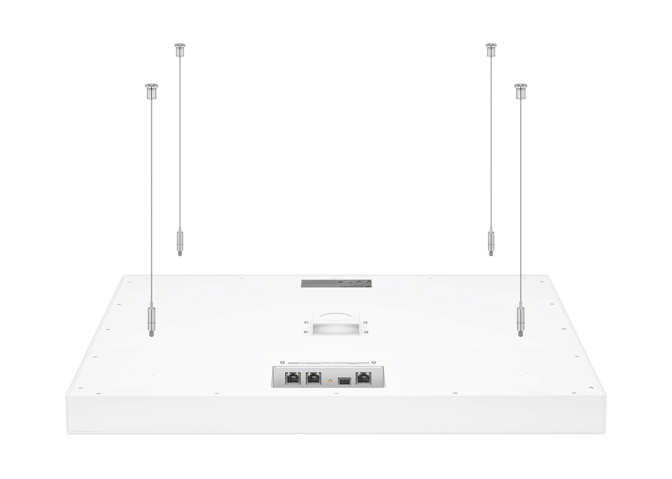 The kit allows the installer to suspend the TeamConnect Ceiling 2 by up to 5m from the ceiling. Kit includes: 4x ceiling installation threads, 4x 5m steel cables, 4x ceiling housing threads.