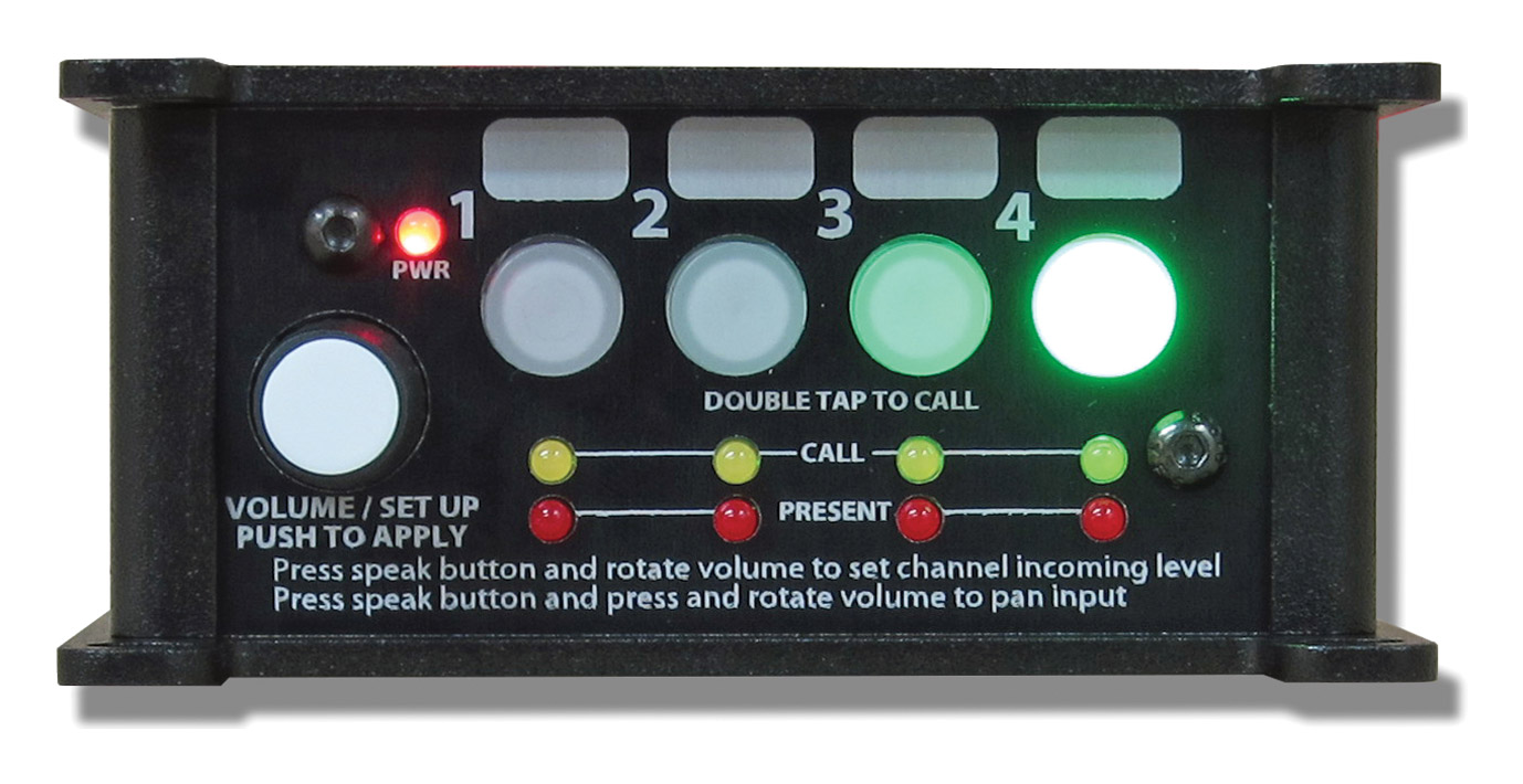 Four yellow LEDs indicate a channel is receiving a call signal - this will also be heard in the headphones, and this allows the user to see which channel is calling. There are also four red presence LEDs which will indicated which channels are receiving a signal.
