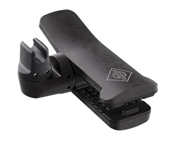 MC 4 is designed to mount the SH 150 gooseneck to the rib of a double bass. A self-adjusting spring mechanism allows the rubber-coated grip to clamp onto an instrument of 202-246mm in thickness without damaging it. An included reducer allows for a slimmer span range of 169-213mm. The gooseneck holding clip rotates in 45-degree increments for best positioning, and locks to prevent unwanted movement. Weight: 38g.