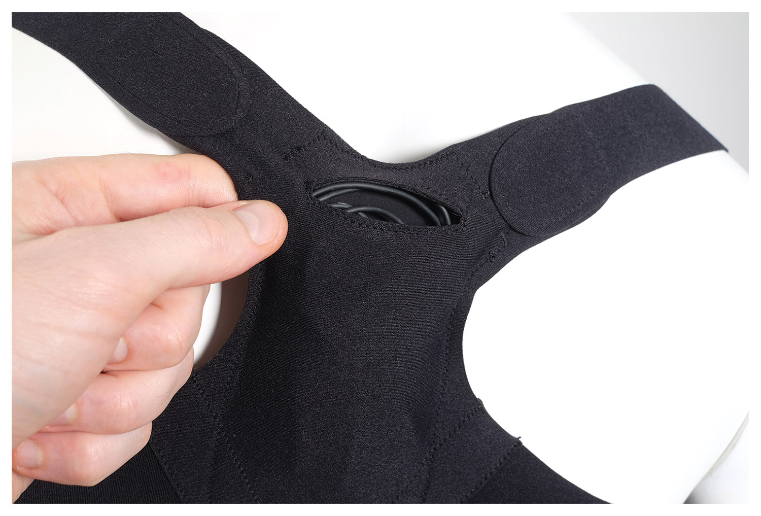 URSA Back Straps have been designed to securely accommodate wireless bodypack transmitters or in-ear monitoring receivers in the middle of the back between shoulder blades. This placement adds disguise to the wireless pack and comfort to the user. The wireless pack can be positioned with antenna facing upward or downwards based on user preference.