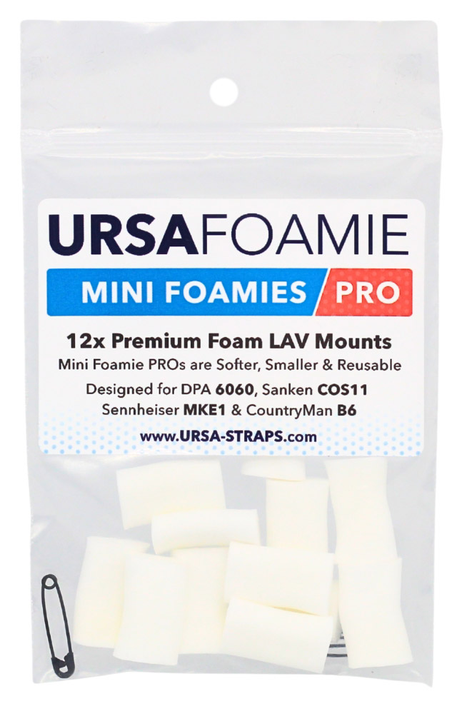 URSA Mini Foamie Pro have the same features and usage as URSA Foamie Pro, however as the name suggests, they are mini versions. Mini Foamies measure 23mm in length, 14mm in width, and 7mm tall, however they can also be cut to size. The diameter of the hole is 2.5mm, and is stretchable for compatibility with microphones including DPA 6060/6061, Sanken COS11, and Sennheiser MKE1.