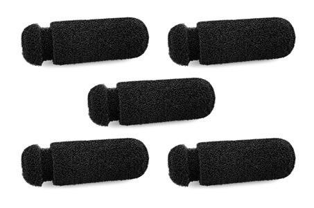 A selection of foam windscreens designed for DPA 4166 Slim and 4188 Slim headset and earset microphones. Each model denotes a different coloured foam with DUA0531-B being black, DUA0531-C being brown, DUA0531-F being beige. All models sold as a set of five pieces.