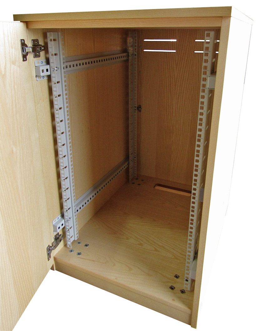For use in home, educational, corporate and commercial environments, where visual appearance is important. These floor-standing 19-inch racks are constructed from veneered high-density particle board. They have locking doors at the front and rear and adjustable rack-mounting profiles. The cabinets are supplied assembled.