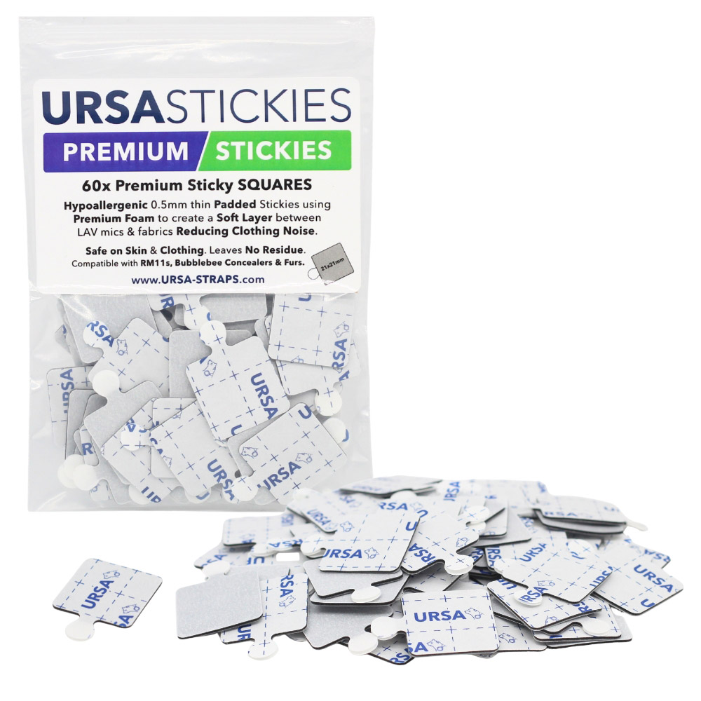 URSA MiniMount Stickies are available in packs 90 pieces. They have been designed for harmonious use with URSA MiniMounts for lavalier microphones. The hypoallergenic tape strips are safe to use against skin and leave no residue on costumes or delicate fabrics.
