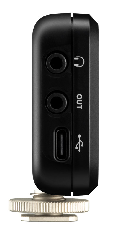 Shure MoveMic Receiver has been designed for those users who with to use with a single or pair of MoveMic lavalier transmitters with a DSLR/mirrorless camera or computer as opposed to mobile iOS/Android device. The receiver can be connected directly to the device via the supplied USB-C or 3.5mm cable. The receiver has a cold shoe mount for compatibility to cameras. A hinge allows 90degree horizontal and vertical rotation for more compact positioning. The display of the receiver indicates connected transmitters, respective battery statuses, mute status, microphone name, and audio input levels for both channels. Navigation buttons allow access to and throughout the menu tree.