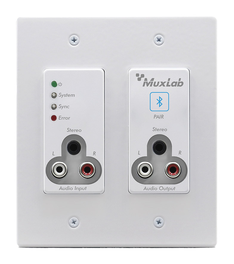 MUXLAB 500559 AUDIO CONVERTER Wallplate, Bluetooth/analogue to Dante, 2-gang US, Decora, white