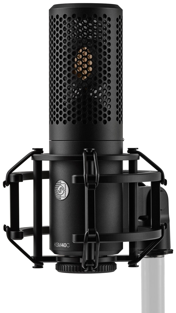 Designed for capturing vocals and instruments, including upright bass, guitar amps and kick drum, KSM40C is a large-diaphragm condenser microphone that features a 'precision-engineered' 1-inch capsule allowing a natural sound with rich low-frequency and high-frequency detail. A proprietary backplate design controls diaphragm behaviour, eliminating sharp resonances. The uniform cardioid polar pattern focuses the source while minimising room and bleed, making placement fast and predictable in multi-mic sessions or less-than-ideal spaces, and smooth proximity effect gives more creative control. An included shock mount and pop filter isolate the microphone from rumble and vibration and block plosives. Also includes a hard mount, a premium case, and a threaded adapter.