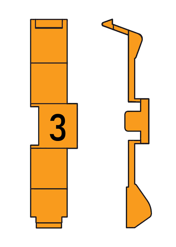 Similar to the traditional chevron shaped cable markers, these snap-fit types can be fitted over cables that have already been installed or terminated. A secure latch holds the marker firmly in place. Markers are manufactured in halogen-free nylon. All types are supplied semi-cut on strips of 32 markers. A marker can be applied to the cable whilst still on the strip for ease of application, snapped shut, and then detached from the strip.