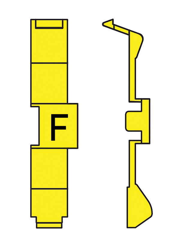 Similar to the traditional chevron shaped cable markers, these snap-fit types can be fitted over cables that have already been installed or terminated. A secure latch holds the marker firmly in place. Markers are manufactured in halogen-free nylon. All types are supplied semi-cut on strips of 32 markers. A marker can be applied to the cable whilst still on the strip for ease of application, snapped shut, and then detached from the strip.