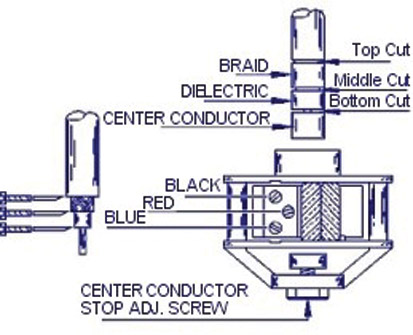 COASTEL COAXIAL CABLE STRIPPER Cutter head for group Q cables using Telegartner HDTV BNC