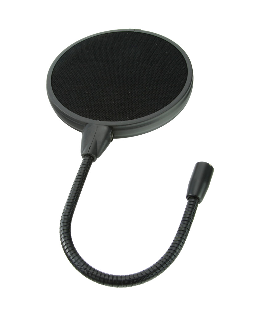 Fine mesh windshield to protect microphones from ‘popping’ and breath noise for close vocal work. Two fine mesh screens of fire-retardant fabric are supported by a circular moulding which is attached to a gooseneck stem, which has a 3/8″ Whitworth inside thread so it can be directly mounted on mic stands or standard accessories such as stereo bars, guitar clamps etc. The multipurpose stand adaptor allows the popshield to be fitted between the mic stand and clip, or fitted directly onto the stems of K&M stands and boom arms (11mm or 15mm diameter). Also suitable for use with most other makes of mic stand and boom arm. The fabric screens may be cleaned by immersing in windshield cleaner; replacement mesh assemblies are also available. Finish: Black.