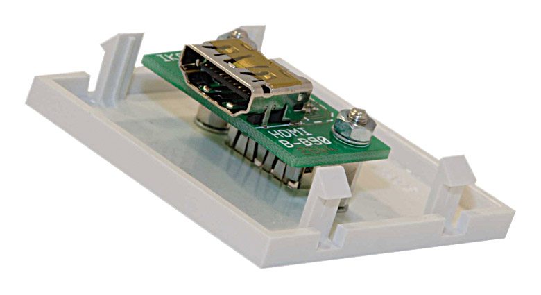 Front panel HDMI socket linked internally to a rear HDMI socket, for use with pre-made HDMI cables. Depth required: 20mm plus connector.