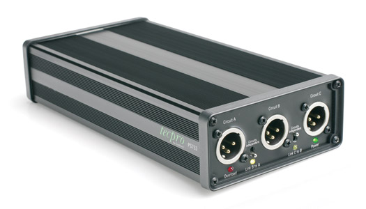 Tecpro Series 2 Power Supplies provide 24V DC to power small to medium sized intercom systems while terminating the audio lines with the correct impedance, enabling full duplex (simultaneous, two way) conversations to take place over extended cable runs. The 2A supply is capable of driving up to forty BP531 beltpacks and is protected by a compact, robust, extruded aluminium case designed to withstand the rigours of the live events environment. They are fully compatible with older Tecpro designs.