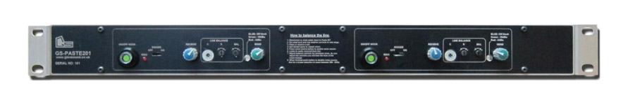 Two rack-mounting versions of the GS-PASTE201 are available. Both are fitted in 1U rack-mounting cases. The GS-PASTE201/R1 has a single unit, the GS-PASTE201/R2 has two balancing units.