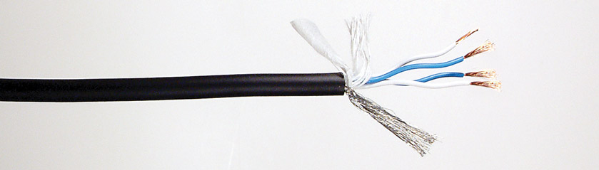 The star-quad design for microphone cables, where 4 conductors are used in pairs, with a short lay length, to cancel out the effects of external electromagnetic noise, is well known in demanding applications such as TV, video and theatre where thyristor lighting control systems are in use. The cables are, of course, also suitable for line level signals. The cables are extremely flexible, using fine stranded copper cores and soft PVC jacketing, and handling noise is minimised by the use of cotton fillers. An irradiated polyethylene core insulation provides a low capacitance dielectric, and its high temperature resistance minimises run-back during soldering.