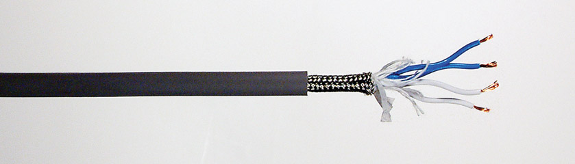 The star-quad design for microphone cables, where 4 conductors are used in pairs, with a short lay length, to cancel out the effects of external electromagnetic noise, is well known in demanding applications such as TV, video and theatre where thyristor lighting control systems are in use. The cables are, of course, also suitable for line level signals. The cables are extremely flexible, using fine stranded copper cores and soft PVC jacketing, and handling noise is minimised by the use of cotton fillers. An irradiated polyethylene core insulation provides a low capacitance dielectric, and its high temperature resistance minimises run-back during soldering.