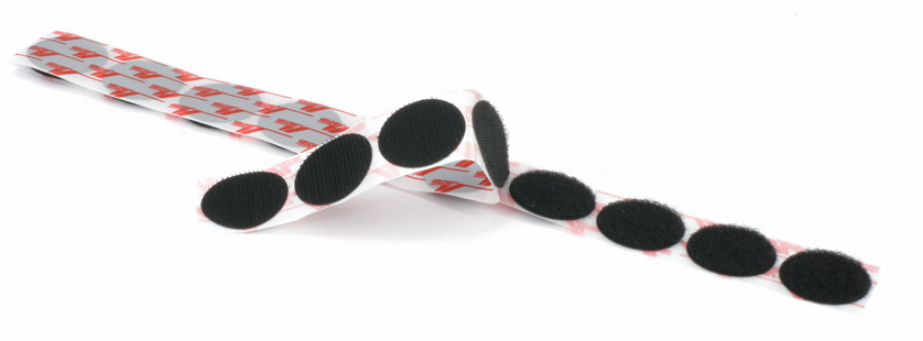 Where semi-permanent fixing of equipment is required, ‘RipSpots’ are ideal. These are simply self-adhesive circular spots of hook and loop material, which may be used to secure equipment that must be dismantled for transportation, or stored for security. Also a good way to fix control panels in studios which may need to be removed for servicing at short notice. Diameter 35mm, supplied in packs of 10 pairs.