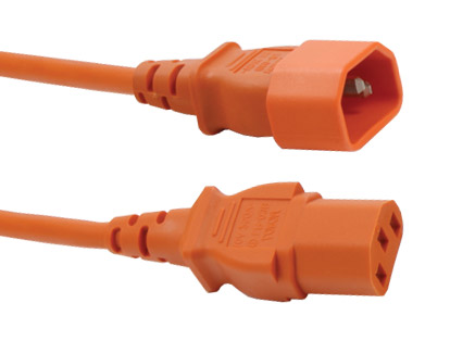 AC MAINS POWER CORDSET IEC C13 female - IEC C14 male, 3.5 metres, orange
