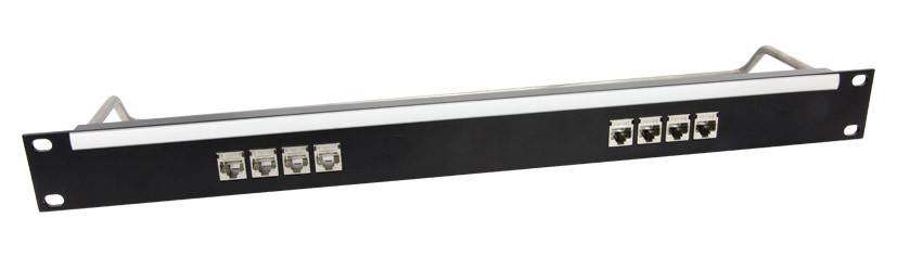 CANFORD CAT6 RJ45 PRO PATCH PANEL 1U 1x8 FEEDTHROUGH, screened, black
