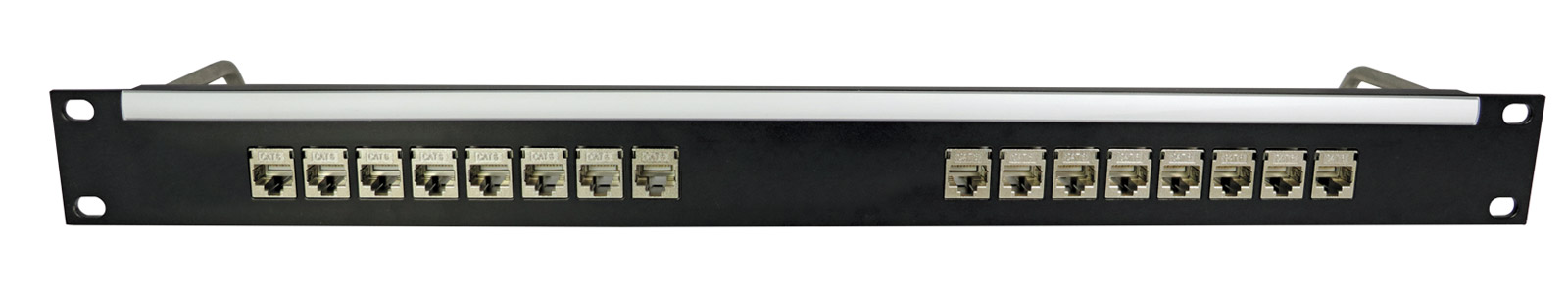 CANFORD CAT6 RJ45 PRO PATCH PANEL 1U 1x16 FEEDTHROUGH, screened, black