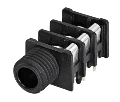These horizontal PCB mounting, panel-mount, 6.35mm jacks offer high packing-density by mounting on 15.88mm minimum centres in rows or arrays. They are available in mono and stereo versions with switching and non-switching contacts. Metal thread versions provide EMC protection grounding connections.