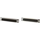 Solder contact D-sub connectors, available in 9, 15, 25, 37 and 50 pin versions. Plug shells are tinned and dimpled. Stamped contact design, gold over nickel plate, rated 5A per contact.