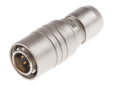 Miniature 4, 6 and 12 pin connectors, 5 keyway orientation guides and sliding ring locking (pull to de-latch, automatic latch engagement on insertion). Pin contacts recessed to prevent damage when trying to find correct keyway alignment. Matt nickel finish zinc/brass alloy shells, gold plated pins. Cable diameter range 4.8-5.2mm (4 and 6 pin types), 6.8-7.2mm (12 pin types), smaller cables should be brought up to this diameter by using Hellerman sleeving. The plug insert is screwed into the shell, but as the main (sliding) part will rotate, the best method is to mate the insert with a chassis-mount type, and use this to hold the insert while the shell is screwed on. An open ended spanner is useful to tighten body onto insert, and cable clamp onto body, size 8mm across flats for 4 and 6 pin types, 11mm across flats for 12 pin type.