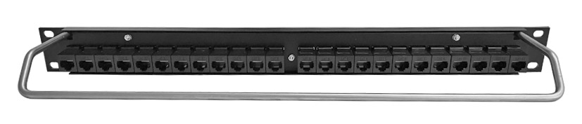CANFORD CAT5E RJ45 PRO PATCH PANEL 1U 1x24 FEEDTHROUGH, unscreened, black