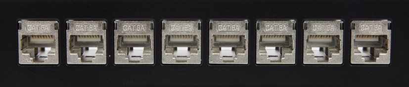 A range of panels supplied fully populated with feed-through (also known as double-sided or back-to-back) screened RJ45 CAT6A sockets enabling system patching and easy connection of portable or external equipment. A printable designation-strip with snap-on cover and a lacing-bar are fitted as standard.