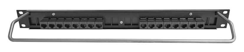 CANFORD CAT6 RJ45 PRO PATCH PANEL 1U 1x16 FEEDTHROUGH, unscreened, black