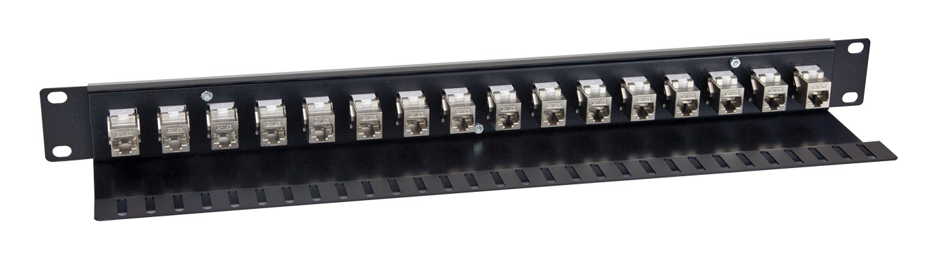 CANFORD CAT5e RJ45 PATCH PANEL, Economy, 1U, 1x16, Feedthrough, Screened,blackCANFORD CAT5e RJ45 PATCH PANEL, Economy, 1U, 1x16, Feedthrough, Screened,black