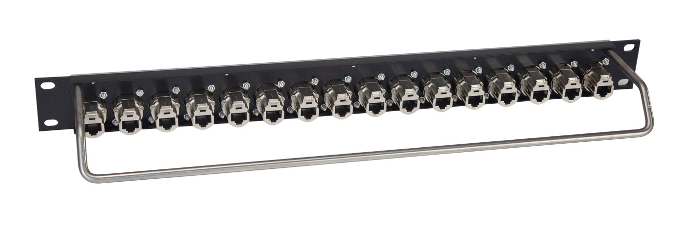 CANFORD ETHERCON TERMINATION PANEL 1U 1x16, CAT6A RJ45 Feedthrough, black